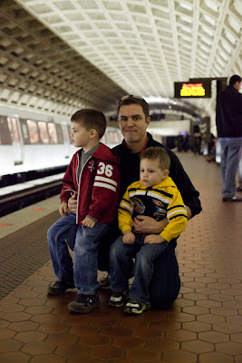 Yesterday I took the boys to the National Christmas Tree. I thought this would be a DREAM for Ben - all the model trains. What a disappointment. After dragging the boys, kicking and screaming, through metro turnstiles and pushing them 8 blocks in a stroller through the brutal wind we arrived at our desitnation. Only to have happy faces turn to frowns. After 1 minute of admiring the trains Ben started to wail... the 'noises' from the trains were too much. He pleaded with me to leave... begging... while AJ begged to stay and cried as I pulled him away. Who was right to cry? Unfortunately with an Autistic child there is a new perspective with everything and I chose to end our adventure when we hit level 10 meltdown. It was very sad to see someone who loves trains so much so overwhelmed. This normally this would have been such a thrill for Ben. Alas, sensory overload got the best of him.